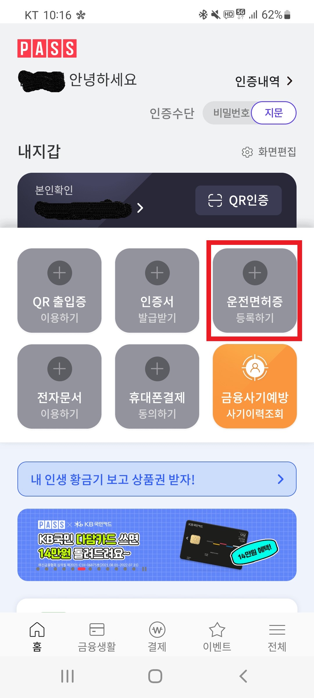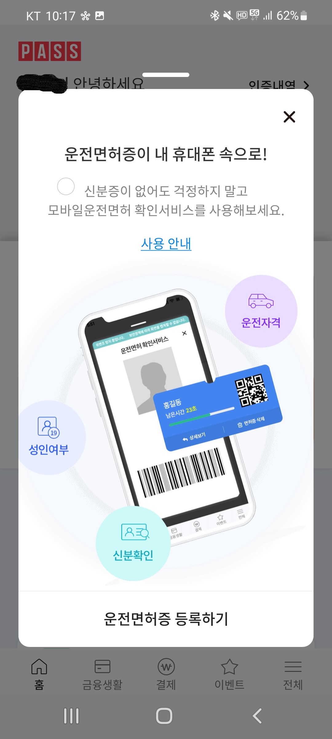 pass앱에 운전면허증 등록하는 방법